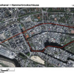Von der Roten Brücke zur Gelben, der Blauen und der Schwarzen Brücke geht es die Bille runter bis zur Endstation an der für uns nicht passierbaren Brandshofer Schleuse. Rückerskanal oder Südkanal ermöglichen eine städtisch geprägte Rundfahrt am Berliner Bogen vorbei ins Hochwassserbecken, mit einem Abstecher in den Schleusenkanal zur heute stillgelegten Hammerbrookschleuse.